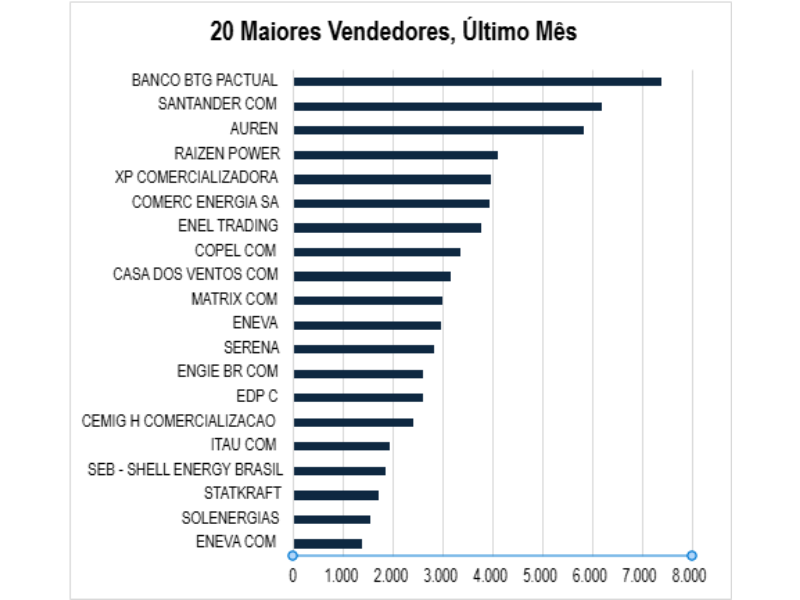 - ENEL TRADING, XP COMERCIALIZADORA e COMERC ENERGIA SA seguem firmes no bloco intermediário do Top 10, com volumes consistentes e presença histórica entre os maiores vendedores.