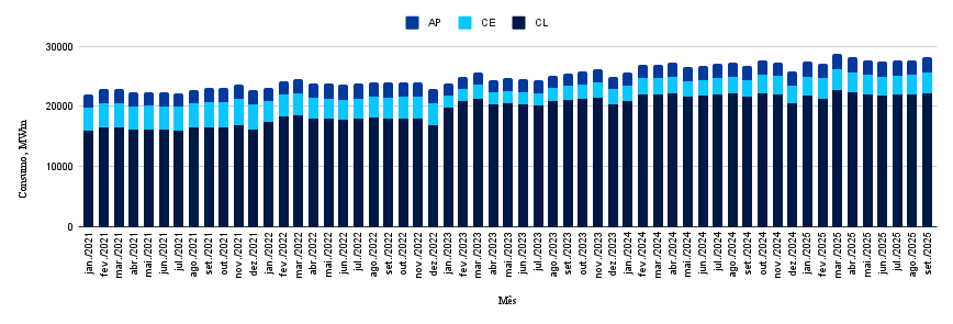 - Em 2025, essa tendência se consolida: os primeiros nove meses do ano apresentaram níveis elevados de consumo, acima dos 28.000 MWm em diversos momentos, o que indica o estabelecimento de uma nova base elevada para o mercado livre.