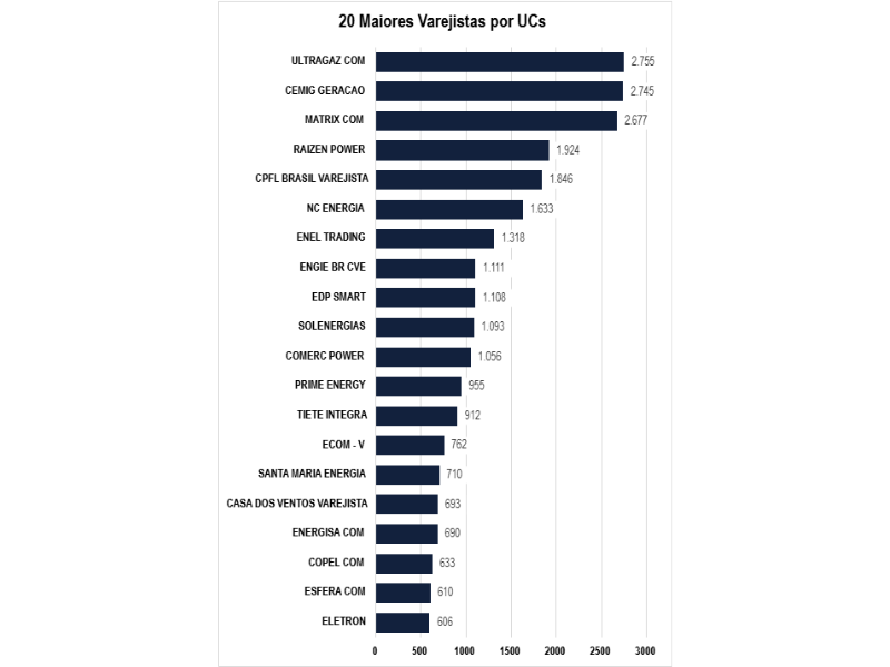 • NC Energia e CPFL Brasil Varejista disputam a faixa intermediária, com 1.633 e 1.846 UCs, respectivamente;