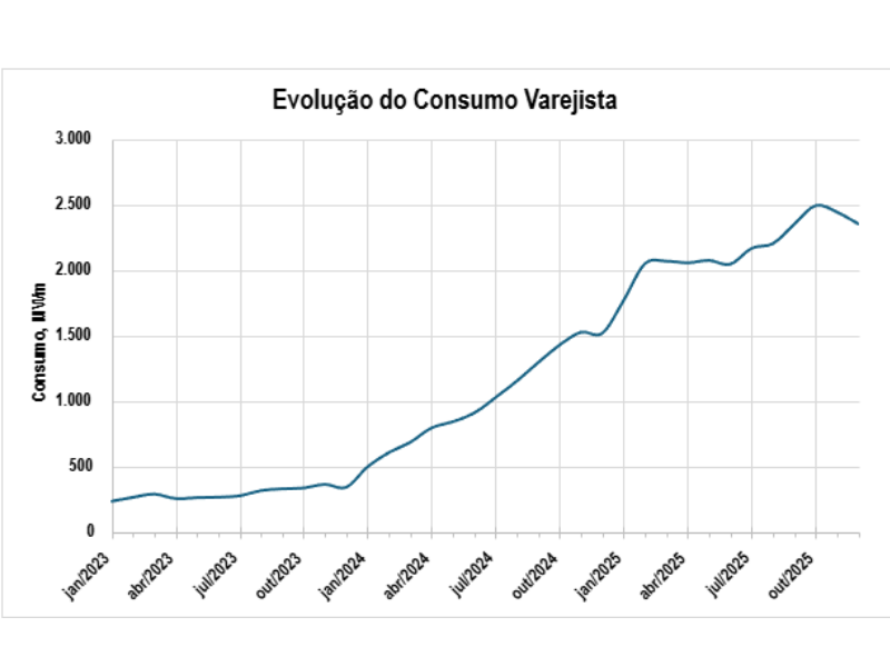 Em dezembro, foram registradas apenas 132 novas migrações, o menor número do ano. Ainda assim, o volume total de Unidades Consumidoras na modalidade varejista alcançou 38.554 UCs, com crescimento líquido superior a 15 mil UCs ao longo de 2025.